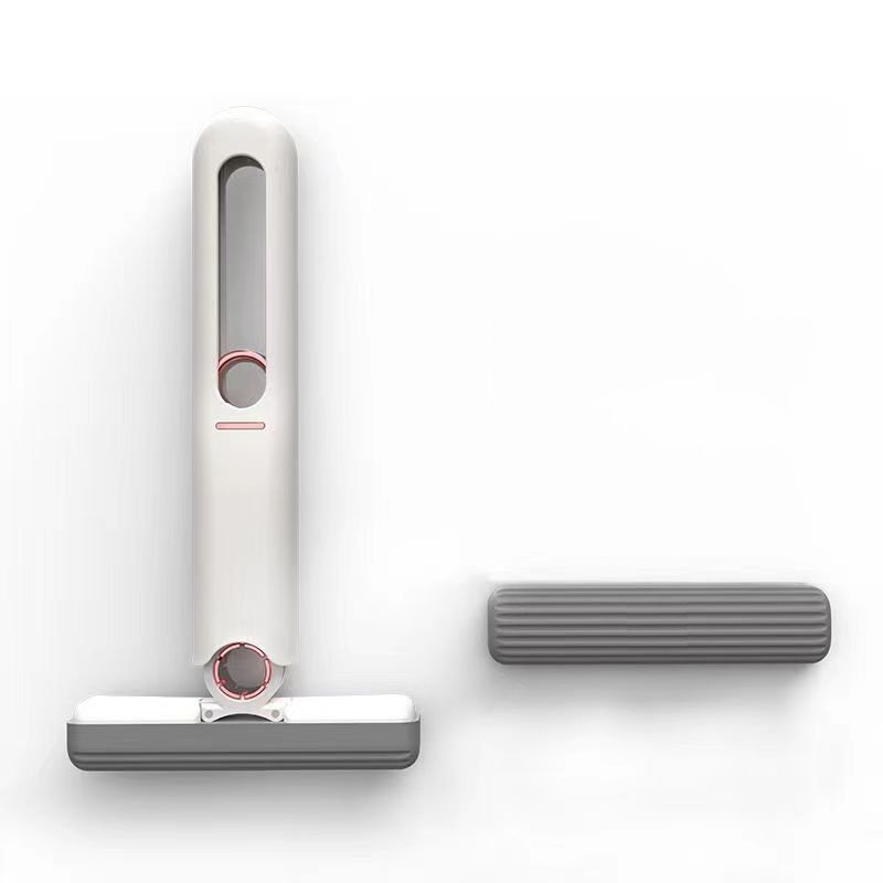 First, install the cotton head and soak it in water. The mini mop is equipped with a wringer, which can be folded in half with a hand at 180° to squeeze out the water, and the washing and dehydration are integrated